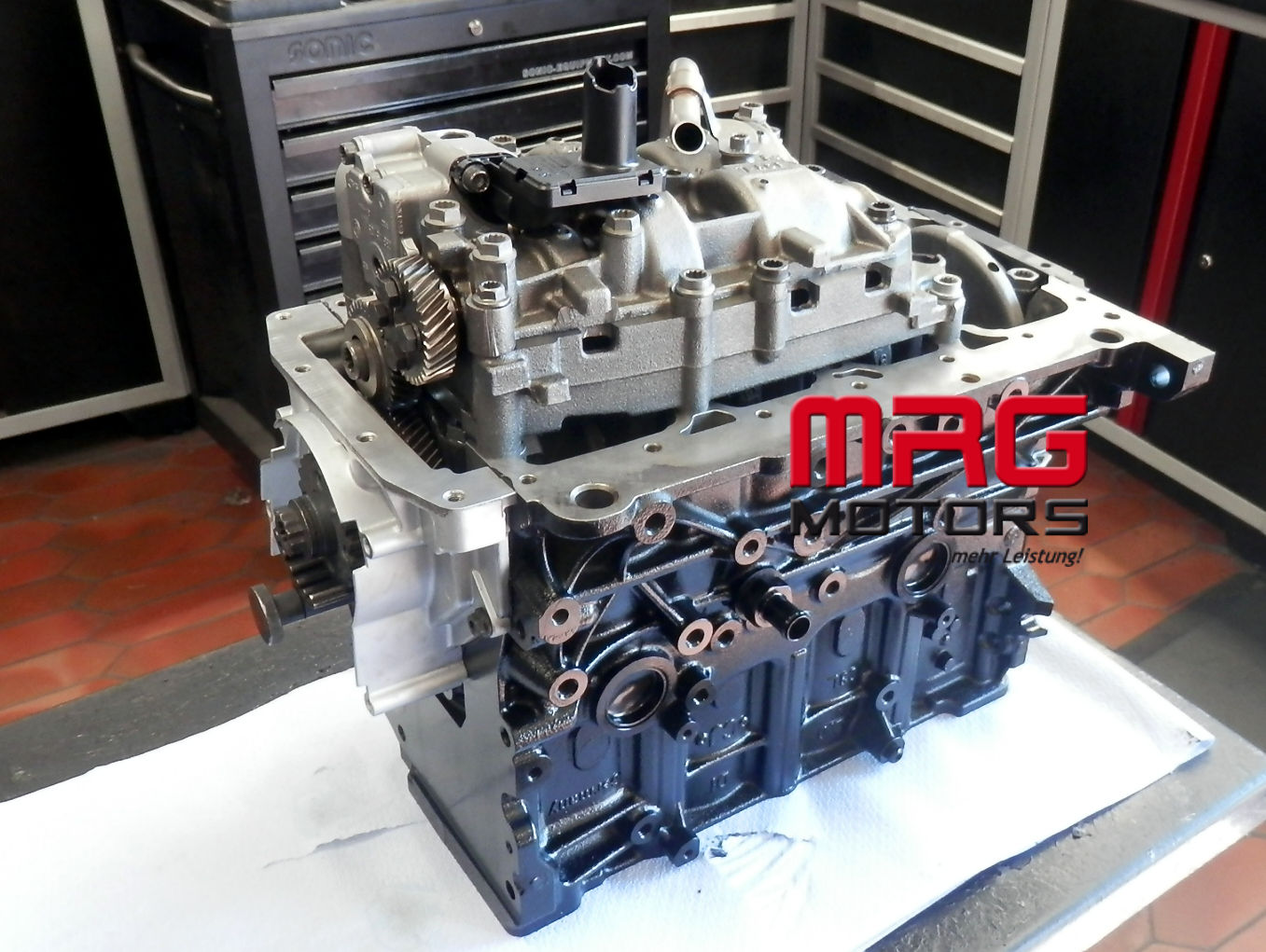 Motor ohne Motoranbauteile, ohne Turbolader, ohne Hochdruckpumpe, ohne Riementrieb.